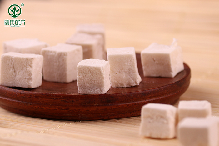 三.茯苓片 至于茯苓片,顧名思義,就是指去掉外表皮后切制而成的茯苓,主要為不規則的厚片,包括白色、淡紅色或者淡棕色這三種顏色。 其實,不管是哪種形式的茯苓,都萬變不離其宗,我們服用后的效果都沒有什么區別。不過,如果想要吃起來更加方便,小編推薦大家可以購買茯苓塊或茯苓片。