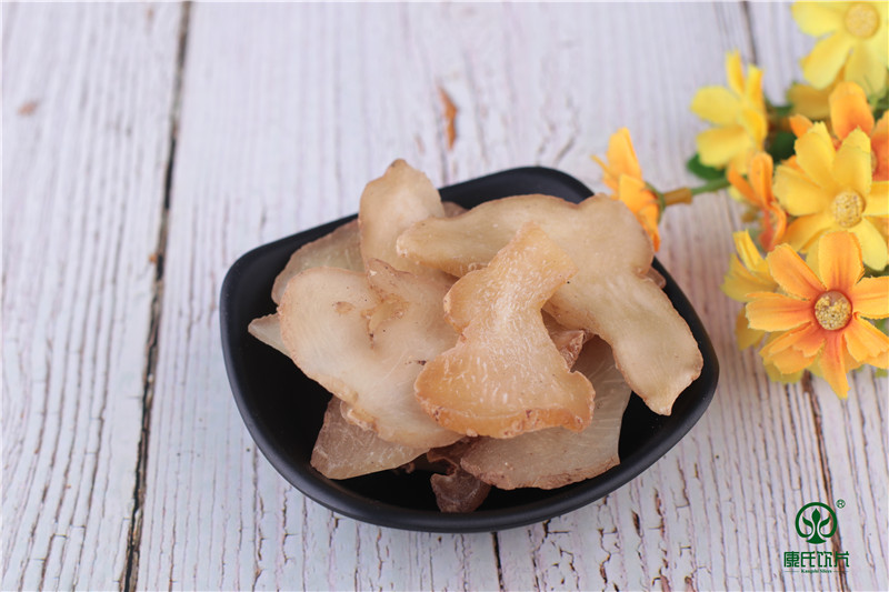 不過,一般情況下,市面上很難購買到九蒸九制的黃精,人們平時用來食用時,蒸制到淡黃色至黃棕色就已經(jīng)夠用了。 步驟五:將蒸到八層干的制黃精進行切制成塊狀或片狀皆可銷售了。 《本草綱目》中記載稱:“壯筋骨,益精髓,變白發(fā):黃精、蒼術(shù)各四斤,枸杞根、柏葉各五斤,天門冬三斤。煮汁一石,同曲十斤,糯米一石,如常釀酒欽。”這也可以理解為制黃精為何仔細聞起來會有黃酒味了。